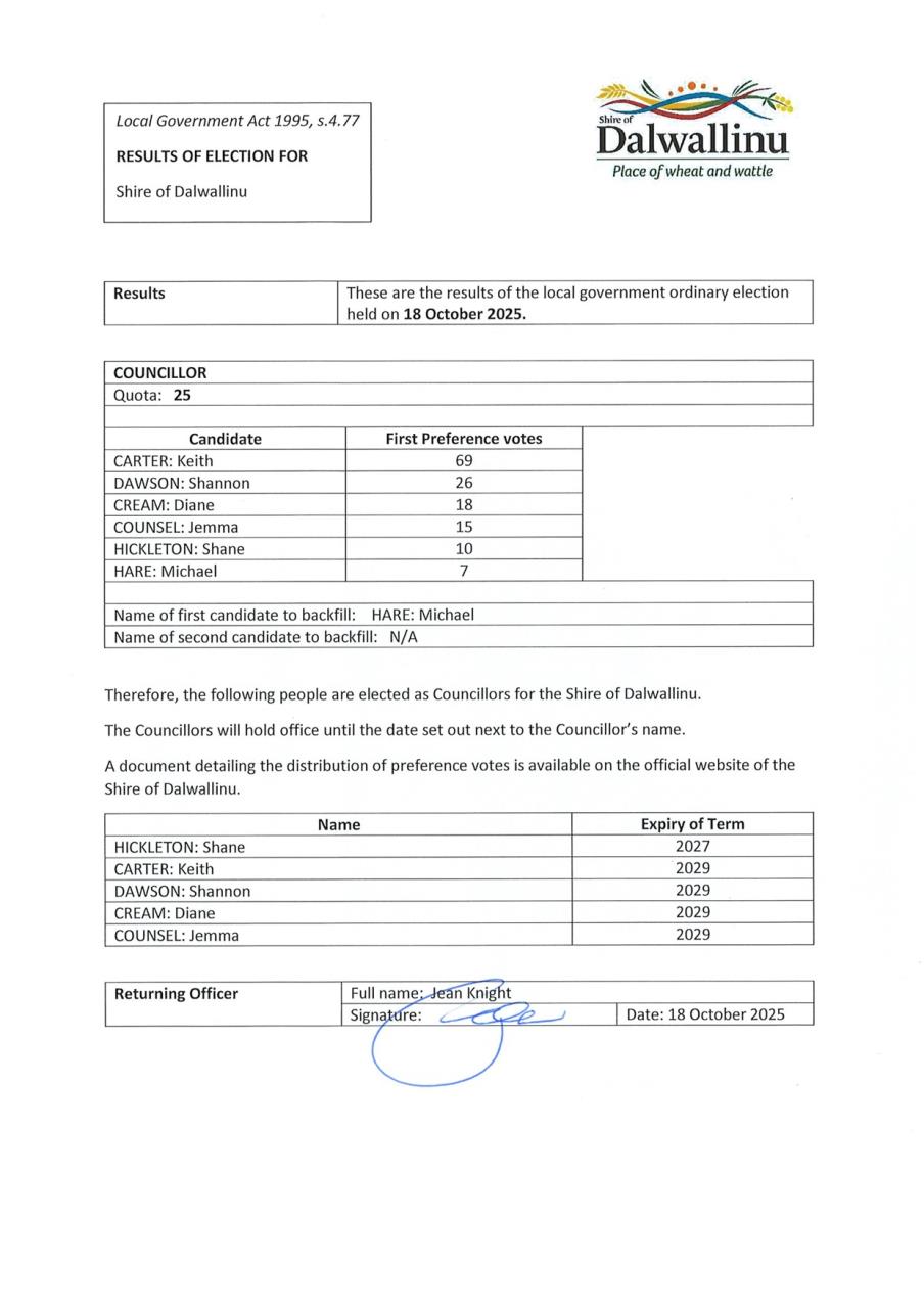 Election Results - 18 October 2025