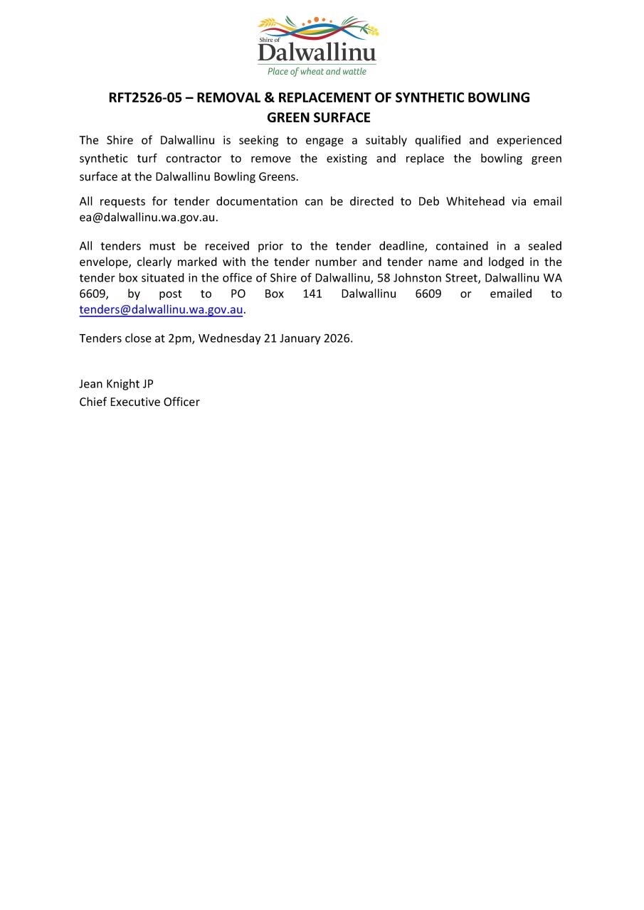 Contact: Deb Whitehead ea@dalwallinu.wa.gov.au